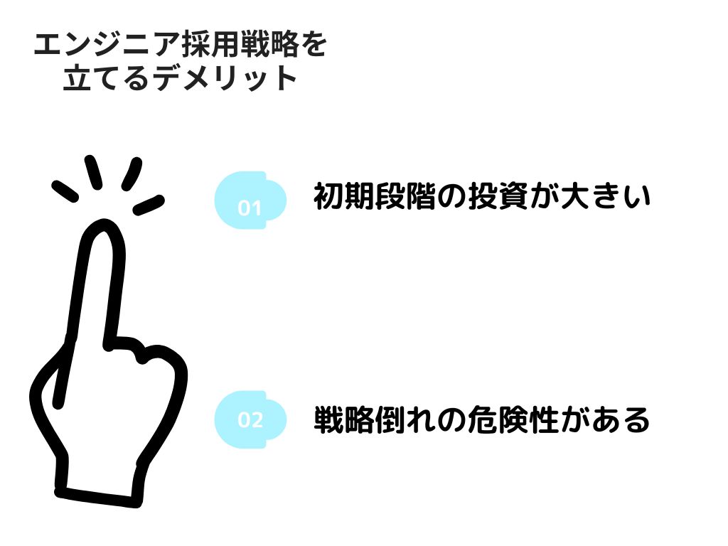 ここでは、エンジニア採用戦略を立てるデメリットと、それを回避するためのポイントを解説します。